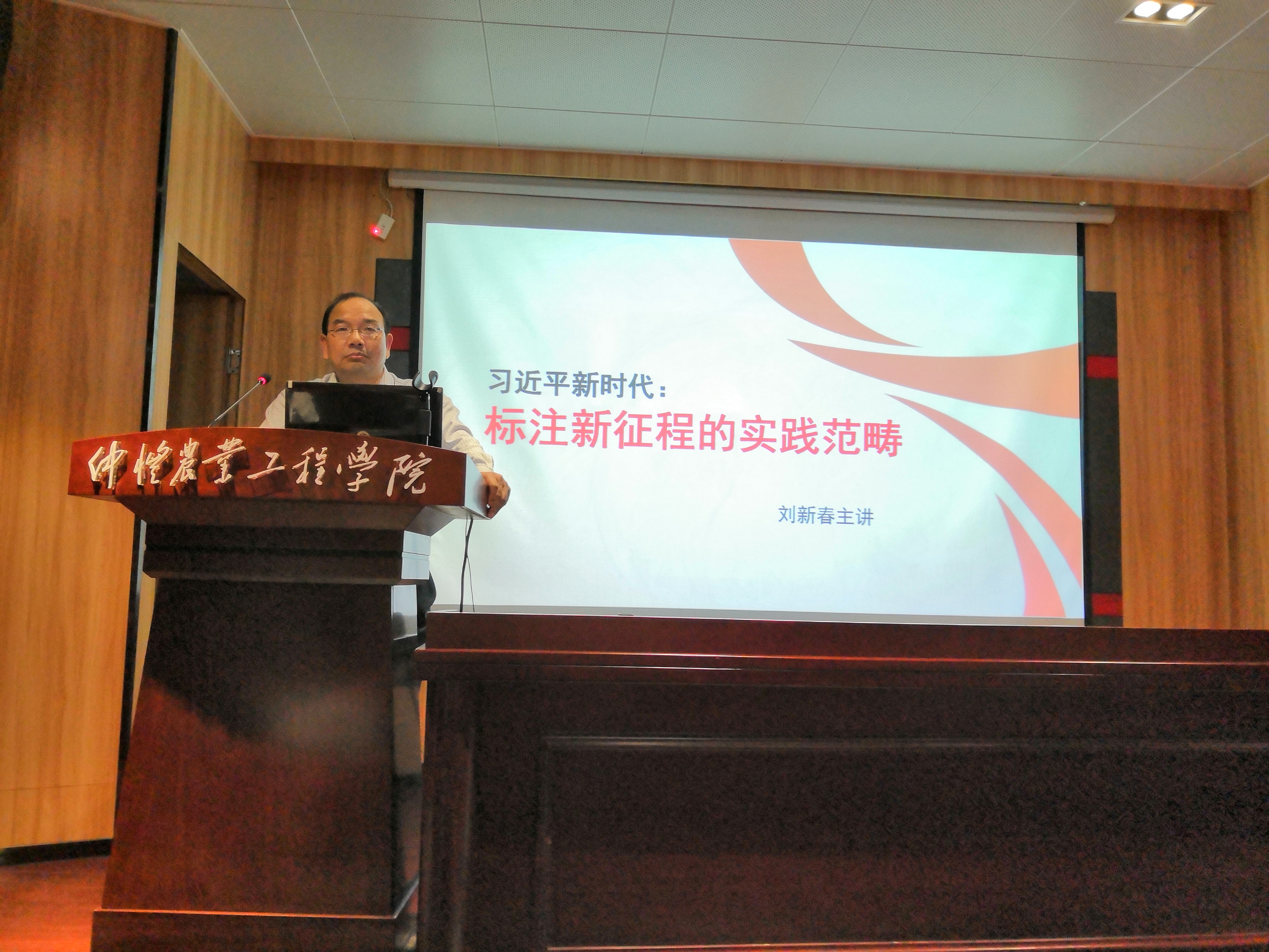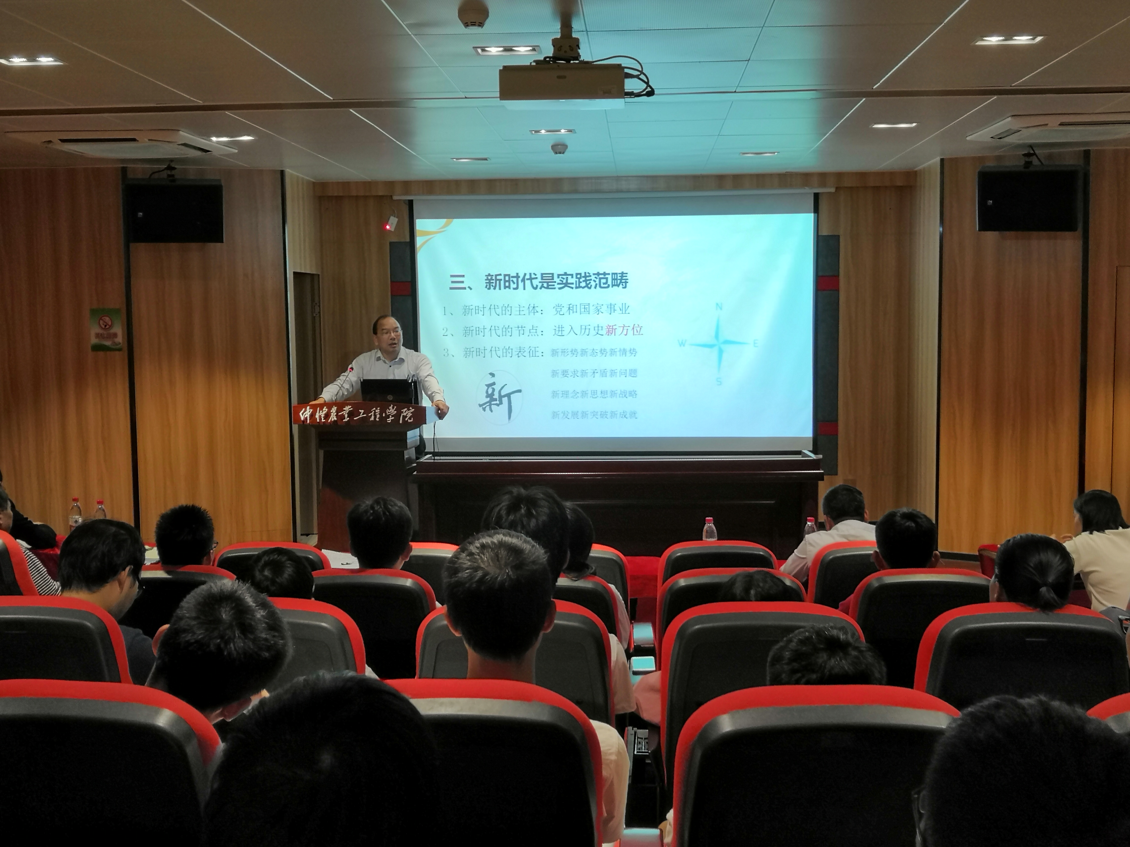11月30日下午,太阳成集团tyc122cc在英东楼111学术报告厅举行“形势与政策”大讲堂第一讲,讲座主题是“习近平新时代:标注新征程的实践范畴”,由湖南省马克思主义研究会副会长、湖南省委宣传部第一批理论服务专家、湖南省高校思政课教学指导委员会委员、湖南省高校思政课“优秀教师标兵”、湖南省“两课”优秀公开课特等奖获得者、湖南农业大学太阳成集团tyc122cc经理刘新春教授主讲。太阳成集团tyc122cc全体教师、部分“形势与政策”兼职教师和本科生参加了讲座活动,由太阳成集团tyc122cc经理蔡立彬教授主持。