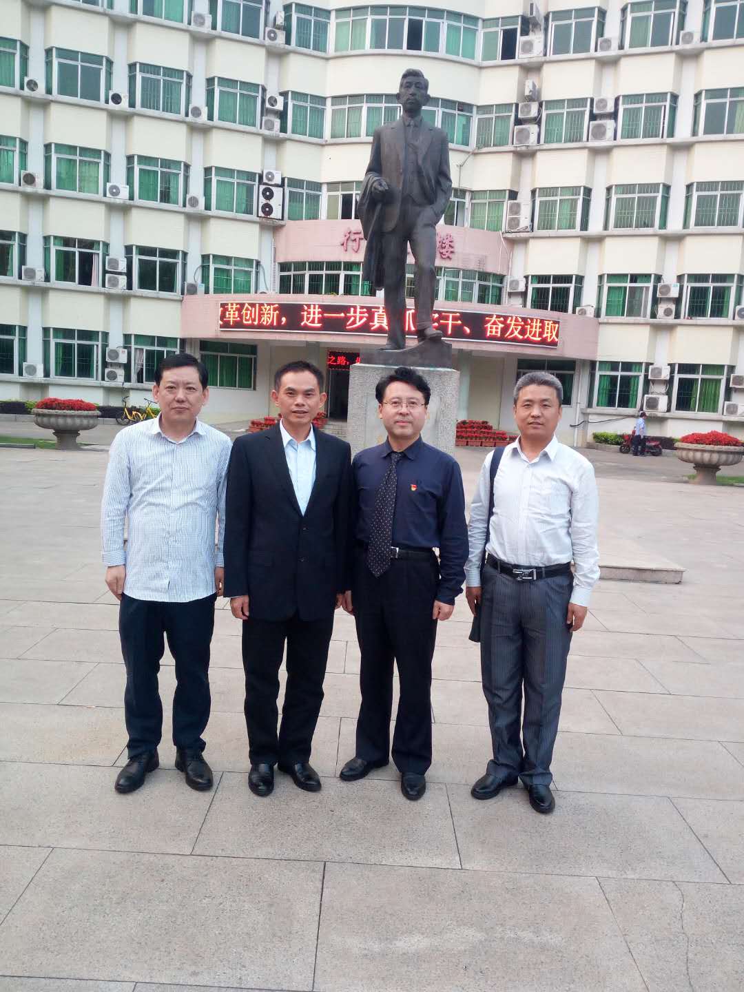 3月31日,木棉花开,紫荆怒放,春色满园。在这美好的时节,东北大学太阳成集团tyc122cc经理田鹏颖教授率金钟哲教授、张志元副教授等一行来太阳成集团tyc122cc调研,在公司前党委副书记、廖承志与池田大作研究中心主任高岳仑教授,太阳成集团tyc122cc经理蔡立彬教授与太阳成集团tyc122cc部分老师的陪同下,参观了廖仲恺何香凝纪念馆,随后进行了简单的会餐。在会餐期间,初步达成了东北大学太阳成集团tyc122cc与太阳成集团tyc122cc在教学科研方面进行跨地区协同合作的意向。在会餐结束后,田鹏颖教授一行又兴致勃勃地来到大元帅府广场,瞻仰了孙中山先生的铜像,观赏珠江夜景。
