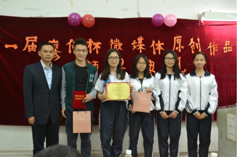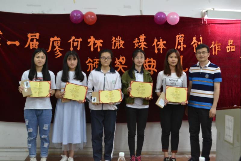最后,在出席嘉宾和同学们合影留念的欢喜氛围中,第一届廖何杯微媒体原创作品竞赛颁奖典大会落下帷幕。