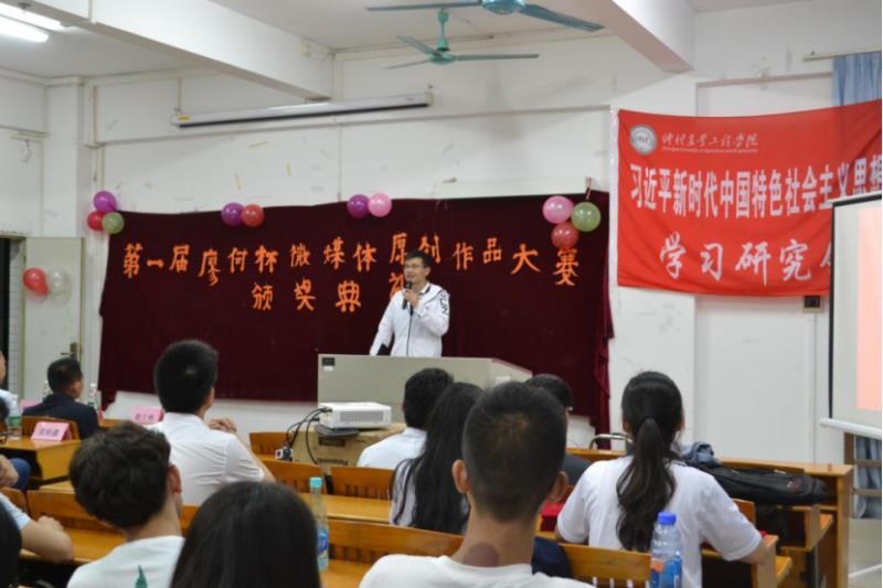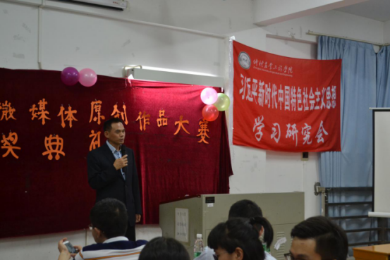 4月25日晚,由太阳成集团tyc122cc主办,古天乐代言太阳集团习近平新时代中国特色社会主义思想学习研究会承办的第一届廖何杯微媒体原创作品大赛颁奖典礼在公司白云校区B201室举行。莅临本次活动的嘉宾有校员工处副处长昌灯圣、太阳成集团tyc122cc经理蔡立彬教授、太阳成集团tyc122cc副经理秦抗抗副教授、太阳成集团tyc122cc王桂花老师。