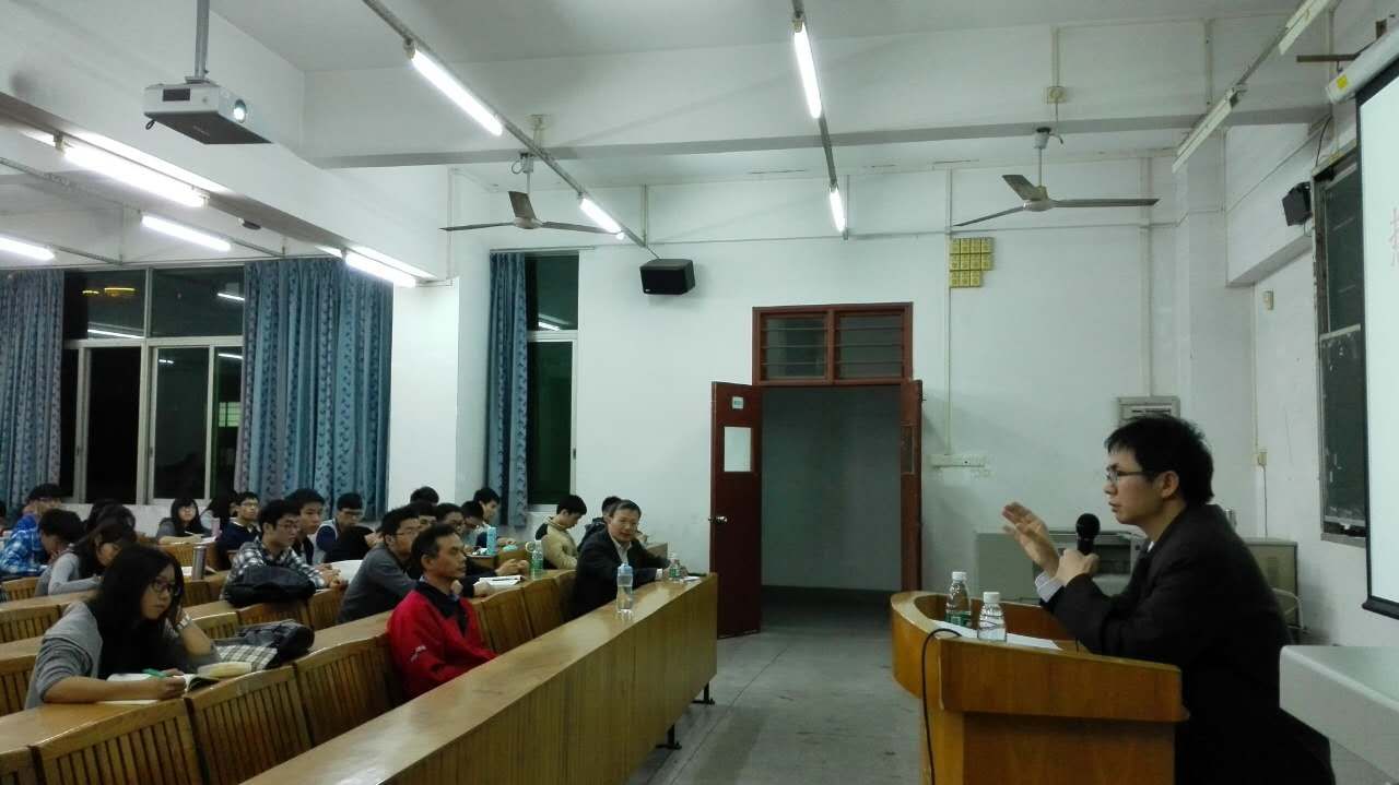 11月29日晚,广东省委宣传部理论处处长丁晋清教授来到海珠校区教学楼B501课室,给公司员工带来了一场深入浅出、内容丰富同时紧贴时事的《准确把握十八届五中全会精神》的辅导报告。太阳成集团tyc122cc经理蔡立彬教授、总支书记翁礼成教授,形势与政策课教研室主任张颖博士,以及人文社会科学公司、信息科学与技术公司员工共180人参加了这次报告会。