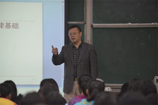 3月12日上午,白云校区杨钊杨勋楼307室座无虚席,管理公司和外国语公司150名大一新生正在专心致志地听着一位新教师给他们上新学期第一堂《思想道德修养与法律基础》课程。这位新的老师就是公司董事长骆少明。