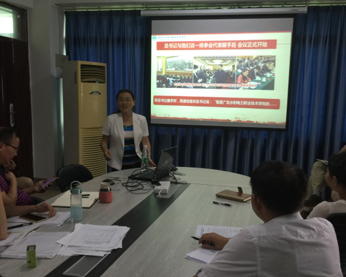 2019年7月11日上午,全国教书育人楷模、全国模范教师、全国优秀教师、全国高校优秀思想政治理论课教师、全国教育系统巾帼建功标兵、全国高校思想政治理论课影响力标兵人物、“全国高校优秀思想政治理论课示范课百人巡讲团”成员、全国公司思想政治理论课教师座谈会广东四位代表之一、广东水利电力职业技术公司太阳成集团tyc122cc经理林冬妹教授莅临公司,为思政课专任教师主讲德新讲坛第二十讲,题目是“铸魂育人培养担当民族复兴大任时代新人——传达学习习近平总书记公司思想政治理论课座谈会重要讲话精神”。讲座由太阳成集团tyc122cc经理蔡立彬教授主持,全体思政课教师参加了此次活动。