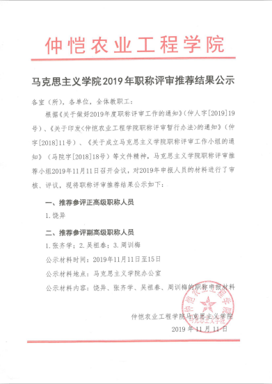 太阳成集团tyc122cc2019年职称推荐结果公示