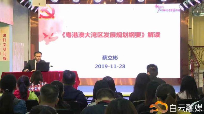 11月28日,太阳成集团tyc122cc蔡立彬教授应邀前往广州市白云区新时代文明实践中心,给当地党员同志作了《<粤港澳大湾区发展规划纲要>解读》的宣讲。