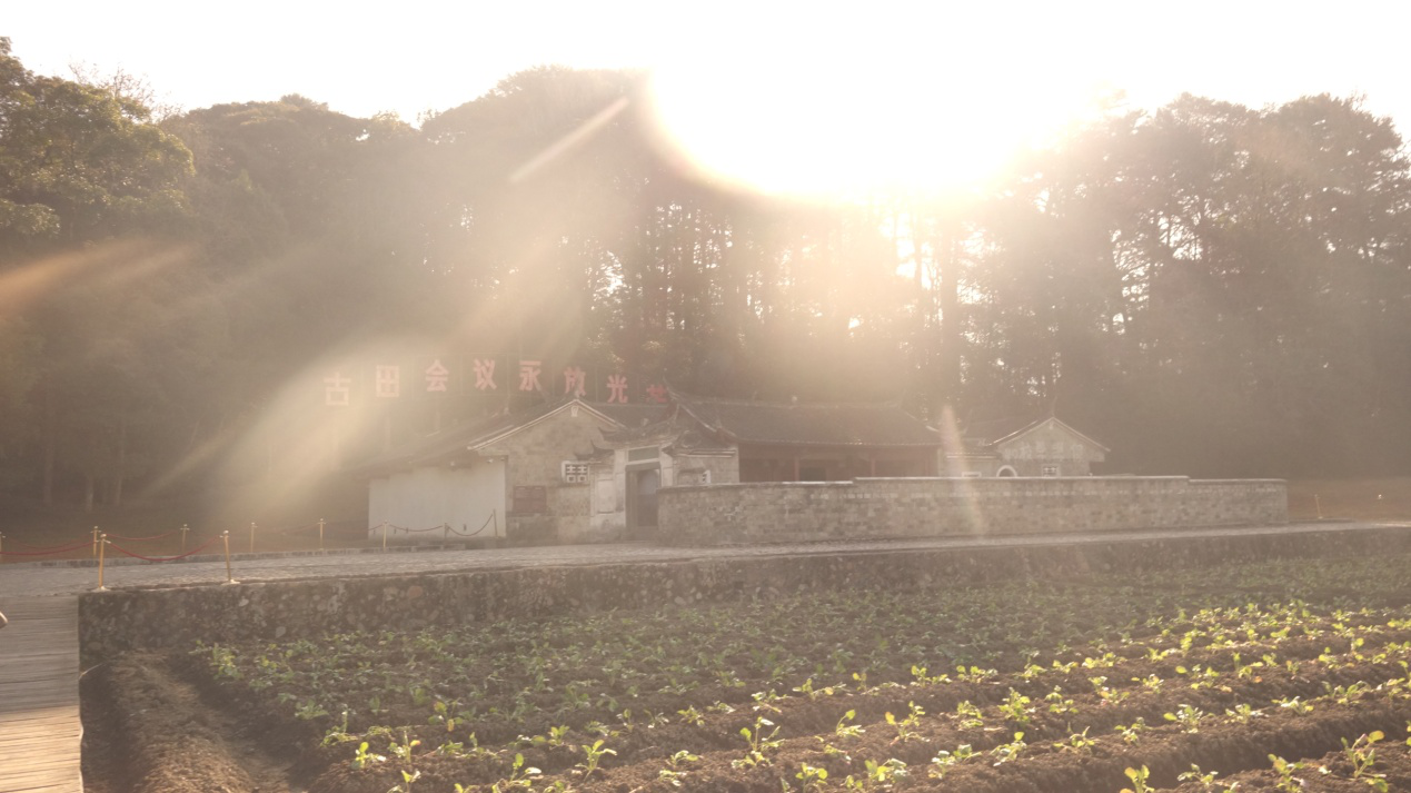 在黄部长一行离开后,我们便来到了毛主席纪念园。毛主席雕塑前赫然摆放着福建省委、中共中央宣传部和中央军委政治工作部敬献的花篮。我们也按照瞻仰礼仪要求,向毛主席塑像三鞠躬,敬献了鲜花,并围绕雕像行走一周。当参观完,再回到古田会议会址廖氏宗祠时,已经是中午11点了。廖氏宗祠及其后背的“古田会议永放光芒”宣传标语,在阳光的照射下显得熠熠生辉。廖氏宗祠的外面和里面,站满了前来研学的四、五年级的小员工,我们就在拥挤的人群中,结束了参观。