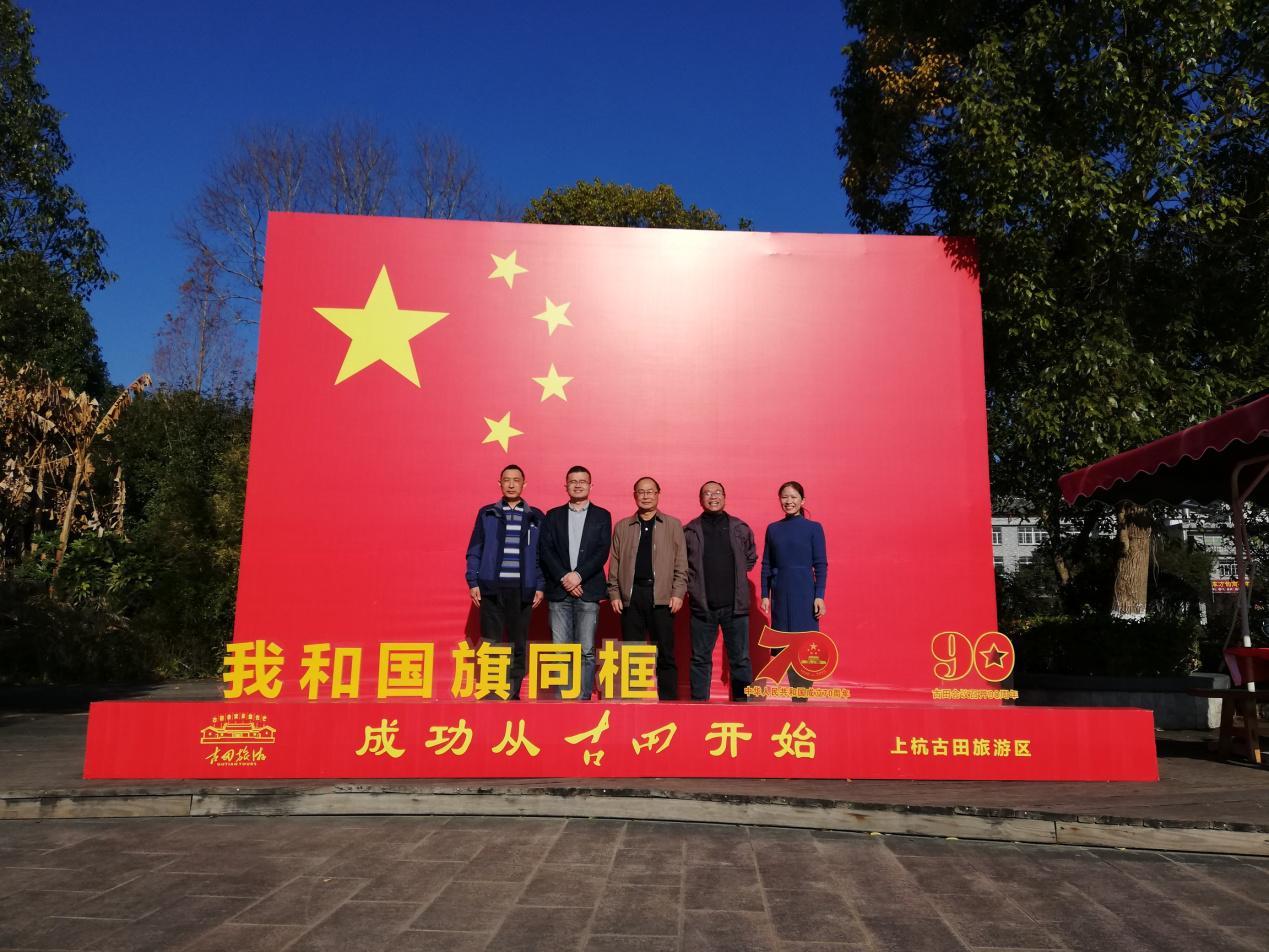 由于恰逢古田会议召开90周年,从下高速开始,便可看到新修道路的两边彩旗招展、军旗飘飘,在接近古田会议会址的道路两旁的灯柱上还置放着鲜艳的火炬,一派节日的氛围。教研活动计划是先参观会议会址,然后去瞻仰毛主席纪念园的毛主席雕塑,接着去参观古田会议纪念馆,最后结合教学和科研进行教研室内部交流。但当我们在宣誓台宣誓后,来到会议旧址廖氏宗祠进行参观时,就巧遇中共中央宣传部部长黄坤明一行也来参观。晚上看新闻得知,黄坤明部长一行是前来龙岩参加纪念古田会议90周年大会的,他们是专程在会前前来瞻仰。