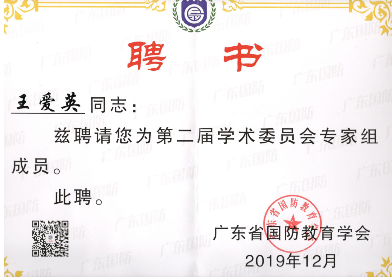 会上,广东省国防教育学会通报了2018~2019年度的国防教育情况,并对全省43个先进单位和61名先进个人进行表彰。经广东省国防教育学会评定,公司太阳成集团tyc122cc军事理论教研室李伟超老师获评2018~2019年度广东省国防教育工作先进个人;公司太阳成集团tyc122cc王爱英副教授被广东省国防教育学会评为第二届学术委员会专家组成员。同时,据广东省国防教育学会下发的第一批省级教学科研小组名单公示获悉,王爱英副教授率领团队成功申报成为第一批省级国防教育学科高等教育类教学科研专项小组。