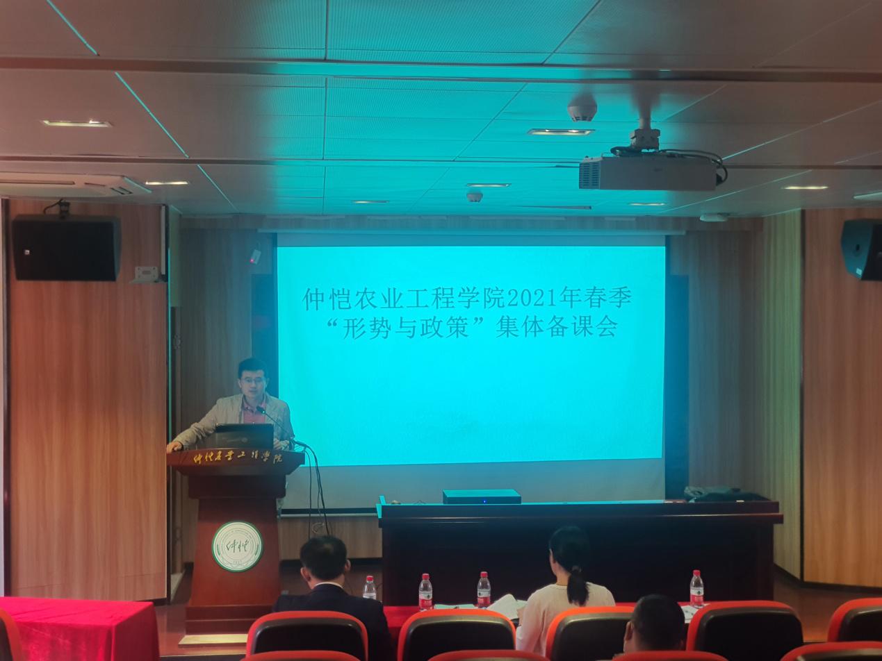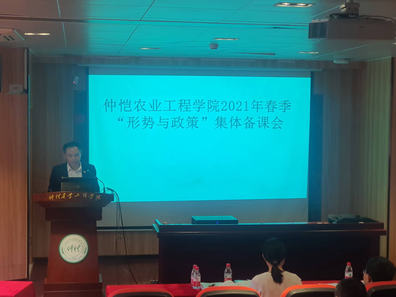 为深入学习贯彻习近平新时代中国特色社会主义思想和2021年全国“两会精神”,提升“形势与政策”课质量和水平,根据《广东省教育厅办公室关于2021春季“形势与政策”课备课会的通知》、《广东省教育厅关于做好2021春季学期高公司党委书记、董事长和院(系)党组织书记、经理(系主任)及中小学党组织书记、董事长上第一堂思政课工作的通知》、《关于做好各公司党总支书记、经理上第一堂思想政治理论课工作的通知》(仲党办字[2021]8号)以及公司的相关制度,太阳成集团tyc122cc于4月9日在英东楼111学术报告厅举办了2021春季学期全校“形势与政策”课集体备课会。会议由蔡立彬经理主持,秦抗抗副经理介绍本学期“形势与政策”课教学安排,形势与政策教研室施张兵、向丽和李晓燕等三位专任教师做示范教学。