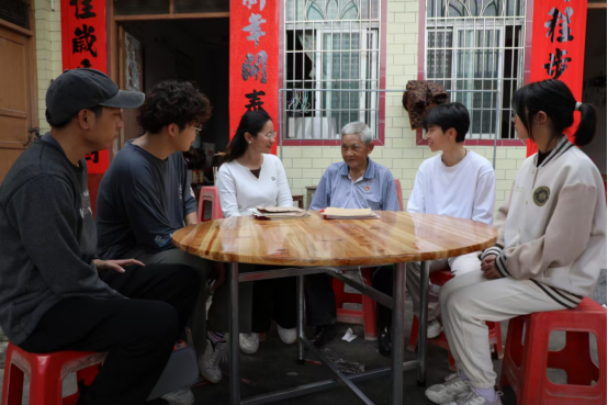 年例庆典上,舞狮的鼓点与飘色的巧思让师生们沉浸于岭南民俗的魅力。“非遗不仅是技艺,更是乡村的精神根脉。乡村振兴需要文化自信的支撑,而自信源于对传统的理解与传承。”作为思政课教师,周映萍在活动现场为员工讲解年例背后的文化内涵。员工们跟随八旬老党员苏政翻阅《祥章历史大小事》,聆听村庄变迁故事,一堂“行走的思政课”悄然展开:从舞狮到飘色表演,非遗传承的种子在年轻一代心中生根发芽。非遗技艺的匠心让年轻一代体会到“守正创新”的时代内涵。