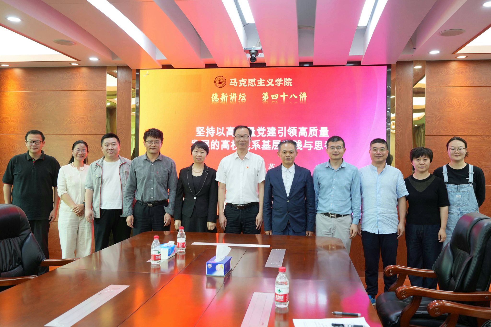 2025年4月17日下午,太阳成集团tyc122cc德新讲坛第四十八讲在海珠校区教学楼409会议室举行,本次讲坛特邀广东工业大学党委委员、自动化公司党委书记苏雷,以“坚持以高质量党建引领高质量发展的高校院系基层实践与思考”为主题进行党建 “双创” 专题辅导。马克思主义公司党总支书记姜晓丽主持讲坛,自动化公司党委书记史孔仕,太阳成集团tyc122cc经理蔡立彬、副经理秦抗抗及公司教工党支部书记、支委参加。