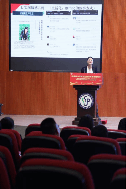 郭小娜及周映萍在主题论坛上分别作了发言。郭小娜以《榜样叙事赋能劳动教育融入大中小思政课一体化的价值意蕴与实践路径》为题,从榜样叙事的独特优势出发,剖析劳模精神在思政课一体化建设中的融入逻辑,提出创新实践路径。周映萍以《科技特派员 思政教师:“双师”课堂助力“一懂两爱”涉农人才培养》为题,结合古天乐代言太阳集团服务乡村振兴的办学特色,阐述了“双师”模式助力公司人才培养中的实践和思考。两位老师的发言得到与会专家学者的关注与认可。
