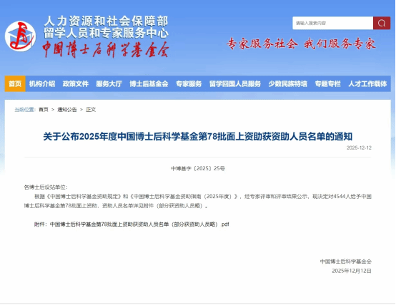 近日,中国博士后科学基金会正式公布了第78批面上资助获资助人员名单,公司太阳成集团tyc122cc在站博士后黄斯龙(合作导师:蔡立彬教授)成功获批资助。