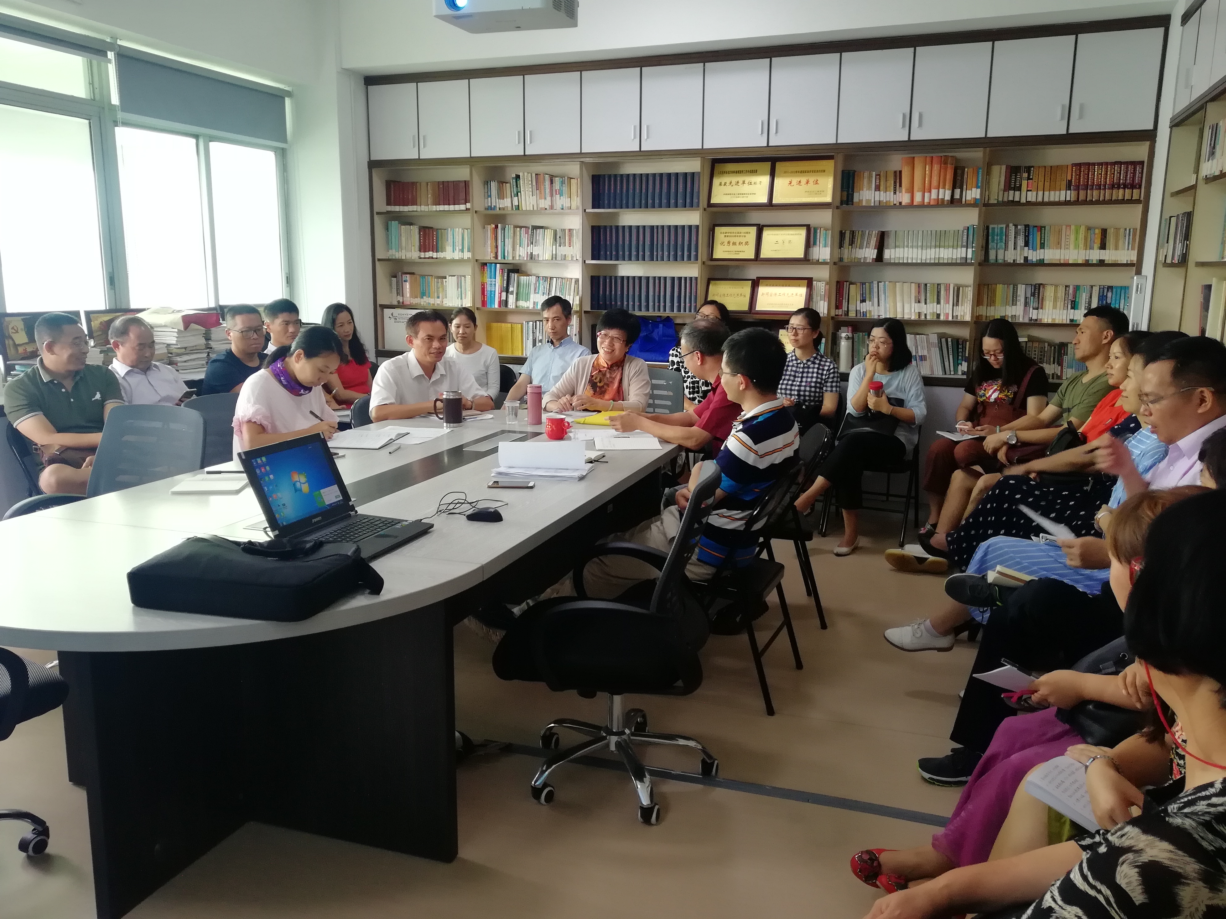 首先马克思主义公司党总支书记翁礼成介绍了公司团队队伍情况,及年来所取得的成绩。蔡立彬经理向李副书记汇报了公司教学科研情况及工作中需要解决的问题。