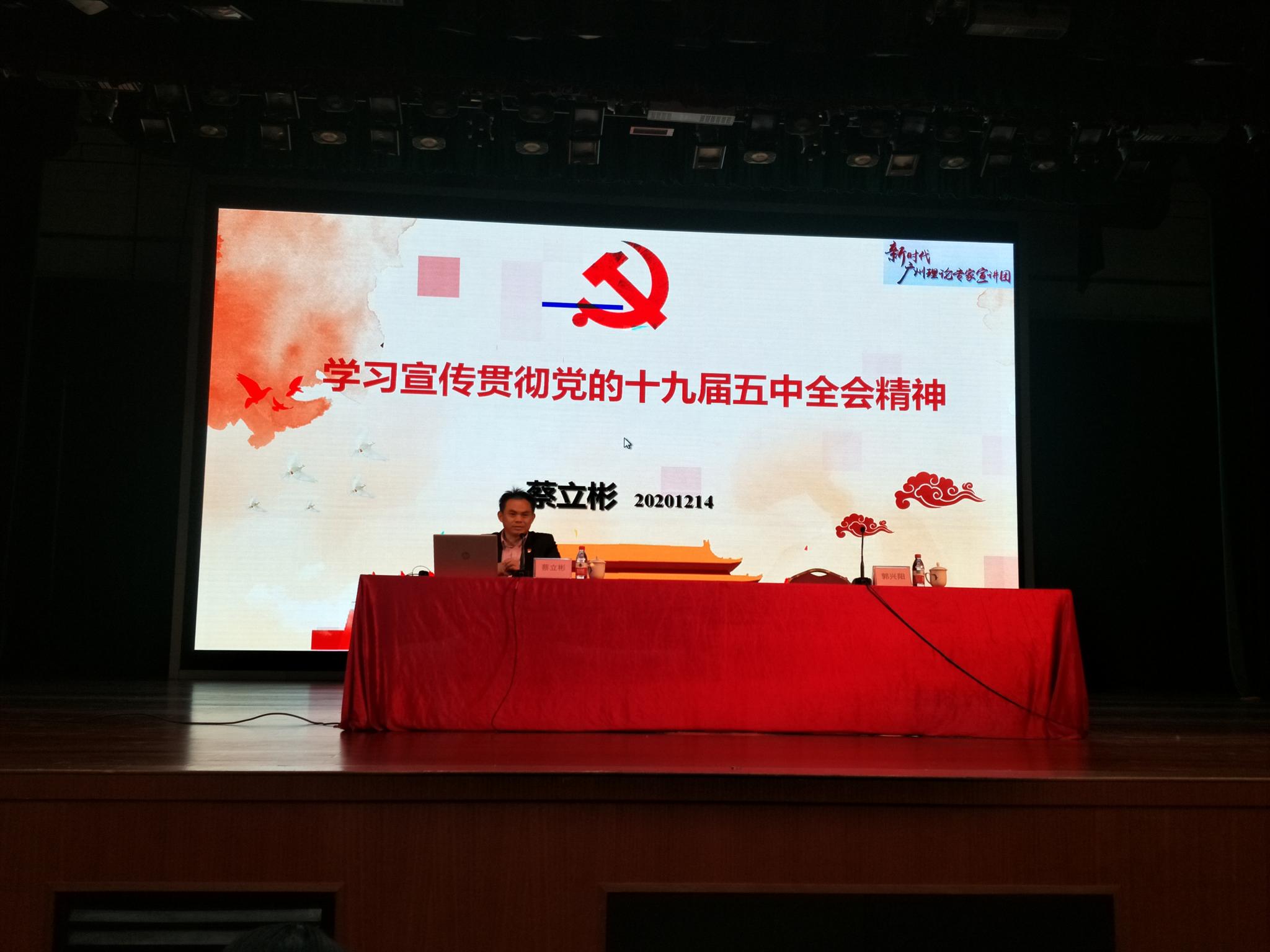 2020年12月14日,太阳成集团tyc122cc蔡立彬教授应邀前往广州市白云区文化广电旅游体育局,给当地党员同志作了《学习宣传贯彻党的十九届五中全会精神》的宣讲。