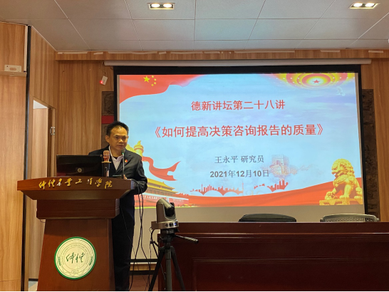 为提升公司教师撰写决策咨询报告的业务能力和水平,2021年12月10日上午,太阳成集团tyc122cc邀请广东省社科联特聘顾问、《南方智库专报》主编王永平研究员作“德新讲坛第二十八讲——如何提高决策咨询报告的质量”的专题讲座。太阳成集团tyc122cc全体教师参加了本次专题辅导学习。