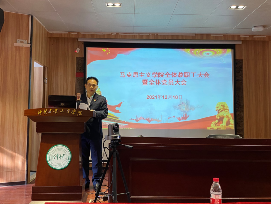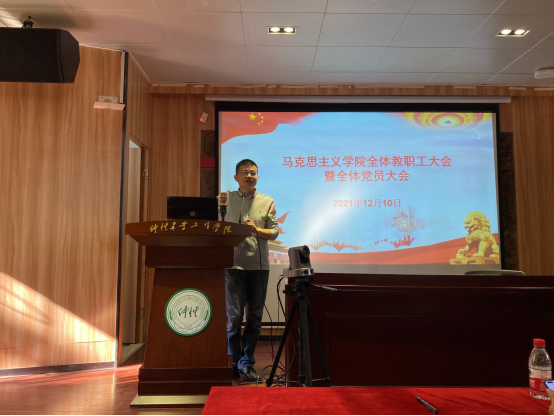 蔡经理首先指出,习近平总书记“3.18讲话精神”为马院发展指明了前进道路和发展方向,为马院教师提供了强大的动力源泉和精神支持。全体思政课教师应当在习近平总书记“3.18讲话精神”的指引下,充分发挥专业课与思政课的协同效应,坚持守正创新,推进思政课改革创新和课程思政建设。其次,蔡经理传达学习习近平总书记在庆祝中国共产党成立100周年大会上的重要讲话精神,带领与会人员重点学习了伟大的建党精神的科学内涵和现实意义。我们要牢牢把握新时代弘扬伟大建党精神的重大意义和实践要求,通过多种形式和扎实举措,让伟大建党精神融入思政课教学。再者,会上继续学习习近平总书记在纪念辛亥革命110周年大会上的重要讲话精神,并深刻认识到要在回顾革命历程中汲取精神力量,在思政课改革等方面发扬革命精神,为实现中华民族伟大复兴贡献独有的“马院力量”。最后,会上还深入学习十九届六中全会精神,对百年党史“四个历史时期”的伟大成就、“十个坚持”的历史经验、“两个确立”的重大政治成果进行了深入解读,不断激发广大教师的精神力量。