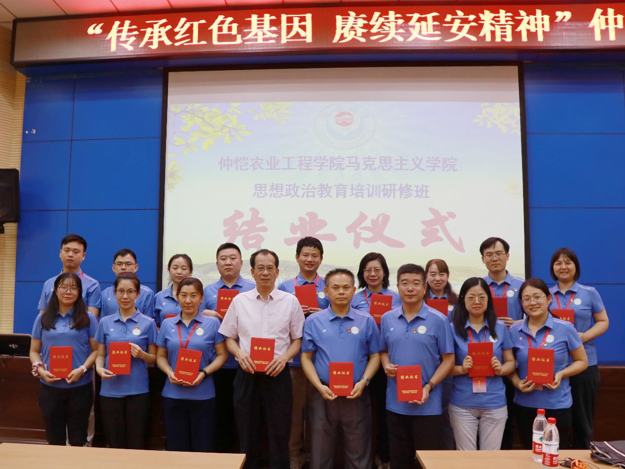 在杨延虎教授专题报告结束以后,在教育部高校思想政治工作队伍培训研修中心(延安大学)班主任兰昊老师的组织下,“传承红色基因 赓续延安精神”太阳成集团tyc122cc教师培训研修班举行了结业仪式,并颁授结业证书。会上,第一组组长韩大猛博士、第二组组长谢智飞博士作为学员代表,先后交流了学习心得;蔡立彬经理扼要地做了总结发言。