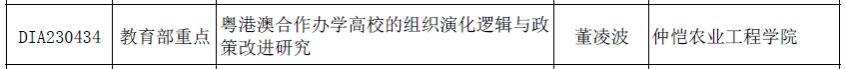 2023年8月28日,全国教育科学规划领导小组办公室公布了2023年度全国教育科学规划立项名单,太阳成集团tyc122cc“习近平新时代中国特色社会主义思想研究”科研团队董凌波副研究员申报的“粤港澳合作办学高校的组织演化逻辑与政策改进研究”课题获得2023年度全国教育科学规划“教育部重点课题”,这是公司在教育部重点课题申报上取得的突破性成果。