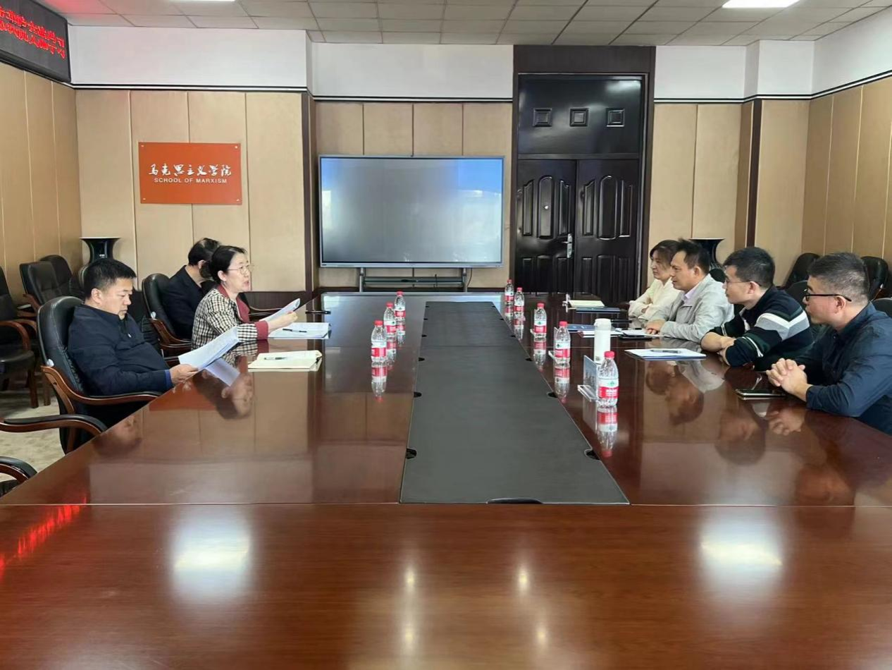 9月24日上午,调研组赴黑龙江大学太阳成集团tyc122cc开展调研学习。黑龙江大学太阳成集团tyc122cc经理王秋、副经理张云贵、中国近现代史纲要教研部主任文记东参加了会议。会议由王秋主持。