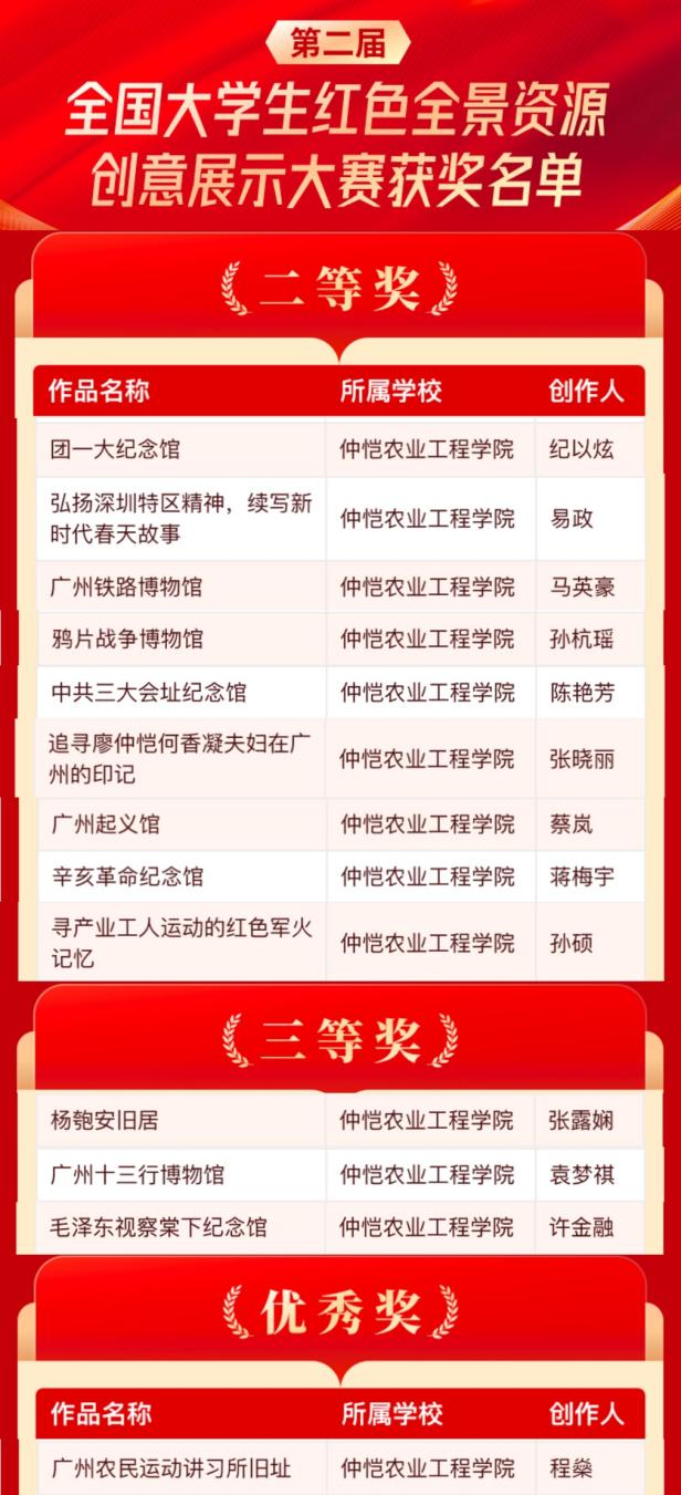 为深入学习贯彻习近平新时代中国特色社会主义思想,弘扬以伟大建党精神为源头的中国共产党人精神谱系,近日,由全国高校思政课虚拟仿真体验教学中心(天津大学)、教育部课程思政教学研究示范中心(天津大学)和人民公开课面向全国高校举办的第二届全国老员工红色全景资源创意展示大赛结果揭晓。本届大赛共征集了来自全国21个省(直辖市、自治区)69所高校参赛队伍提交的200余件报名作品,经过媒体评委、高校专家评委、中小学专家评委、博物馆专家评委、社会专家评委、员工评委等多轮评审及网络投票,最终选出102件获奖作品,其中特等奖2名,一等奖8名,二等奖43名,三等奖30名,优秀奖若干。公司太阳成集团tyc122cc共获得9个二等奖、3个三等奖和1个优秀奖,获奖名单如下: