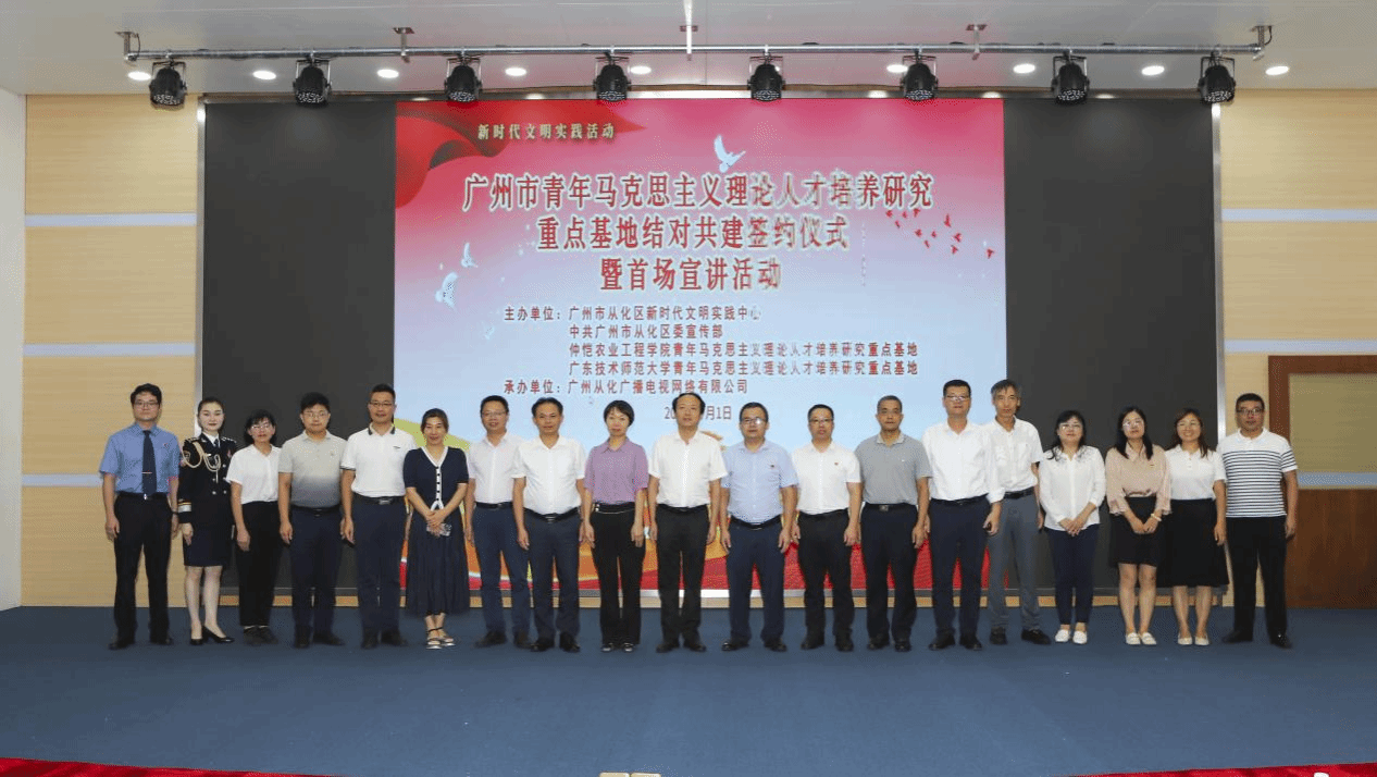 2024年7月1日,在中国共产党成立103周年之际,从化区新时代文明实践中心与公司和广东技术师范大学青年马克思主义理论人才培养研究重点基地结对共建签约仪式暨首场宣讲活动在从化区新时代文明实践中心举行。从化区委常委孙柱,公司马克思主义公司党总支书记姜晓丽、经理蔡立彬,广东技术师范大学太阳成集团tyc122cc相关负责人,从化区有关单位、高校相关负责人以及从化区“奋进流溪 ”百姓宣讲团成员等参加。
