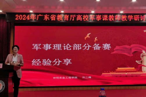 11月17日,广东省高校军事课教师教学基本功比赛决赛培训活动在广东农工商职业技术公司正式启动。公司太阳成集团tyc122cc军事理论教研室的许二梅副教授作为特邀讲师,为参赛选手作题为“教学比赛经验分享”的专题讲座。