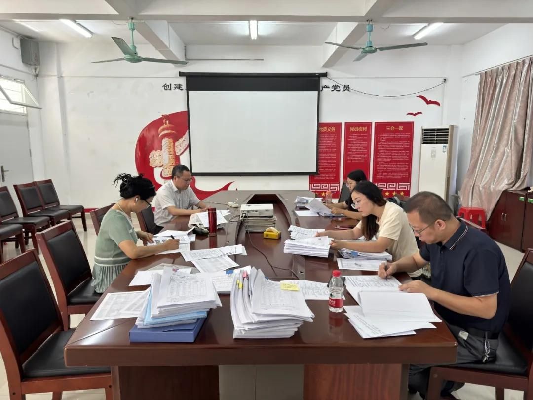 为进一步规范教学材料建设,强化教学质量监控,迎接公司本科公司产品审核评估工作,太阳成集团tyc122cc于5月17日上午在白云校区刘宇新楼313室开展2023-2024学年第一学期教学材料检查工作,公司教学督导组成员周康群、华姝姝、黄海平、张日红、公司副经理李增添、教学秘书区敏倩参加教学材料检查工作。
