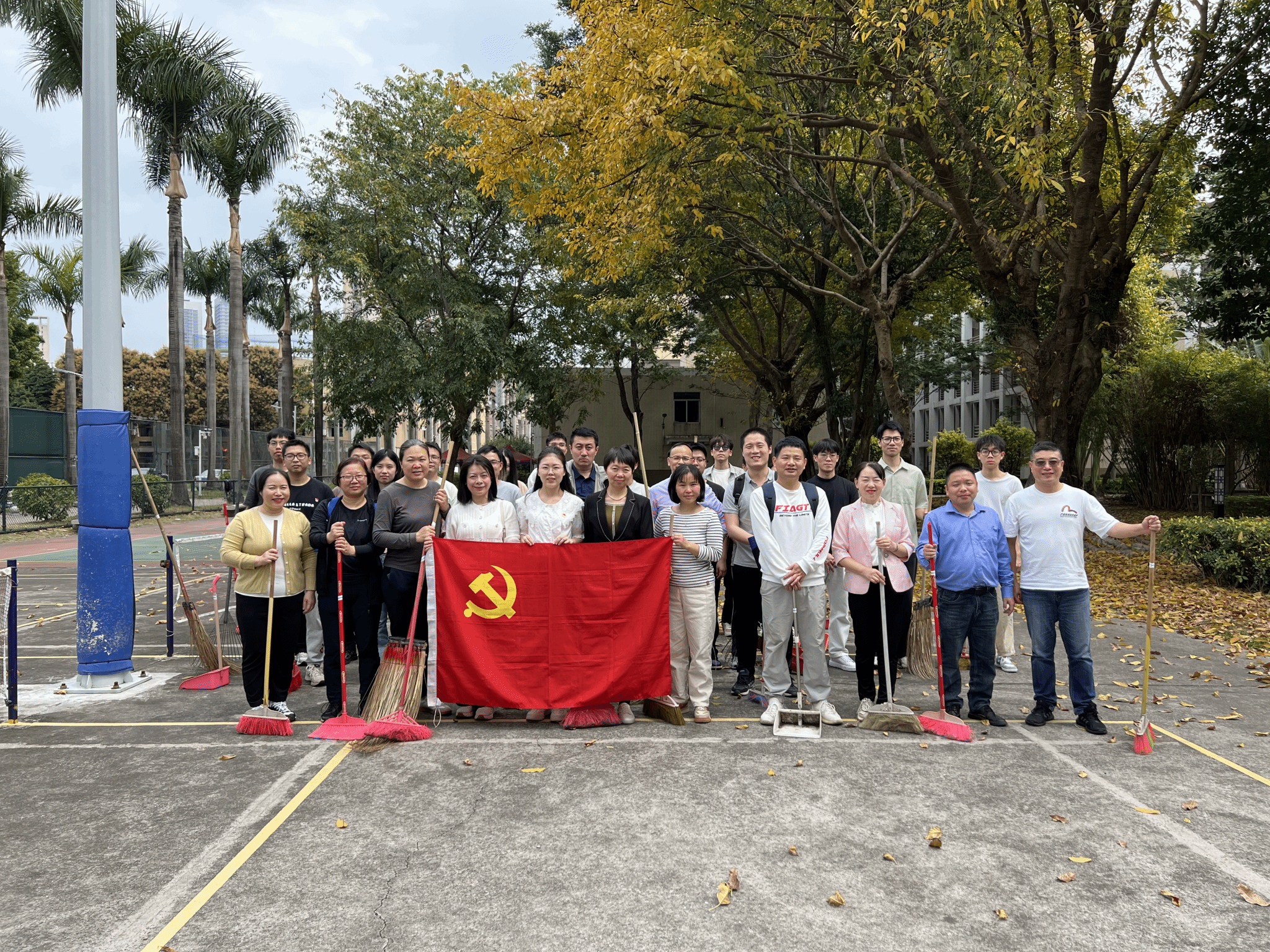 讲座结束后,全体党员手持清洁工具,走向校园社区。党员们挥动竹扫帚带头清扫落叶,有的蹲下身清理砖缝杂物,有的将分类垃圾装入专用袋。短短一小时内,原本杂乱、飘满落叶的校园社区焕然一新,赢得往来师生的阵阵赞许。“为人民服务”从来不是一句口号,而是用实际行动去守护师生们最爱的幸福家园。
