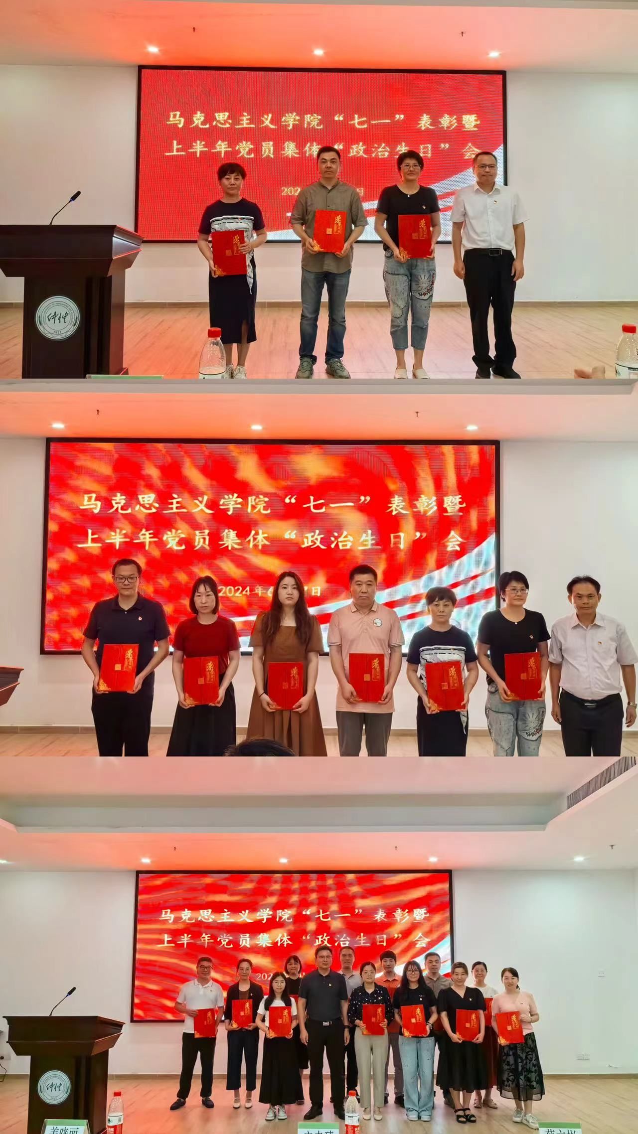 会上宣读了表彰决定,先后为先进党支部、优秀党支部书记、优秀党务工作者、优秀共产党员颁发荣誉证书,为集中过“政治生日”的党员赠送“政治生日”贺卡和学习笔记本,过“政治生日”的党员代表韩大猛老师上台发言,许“政治生日愿望”。