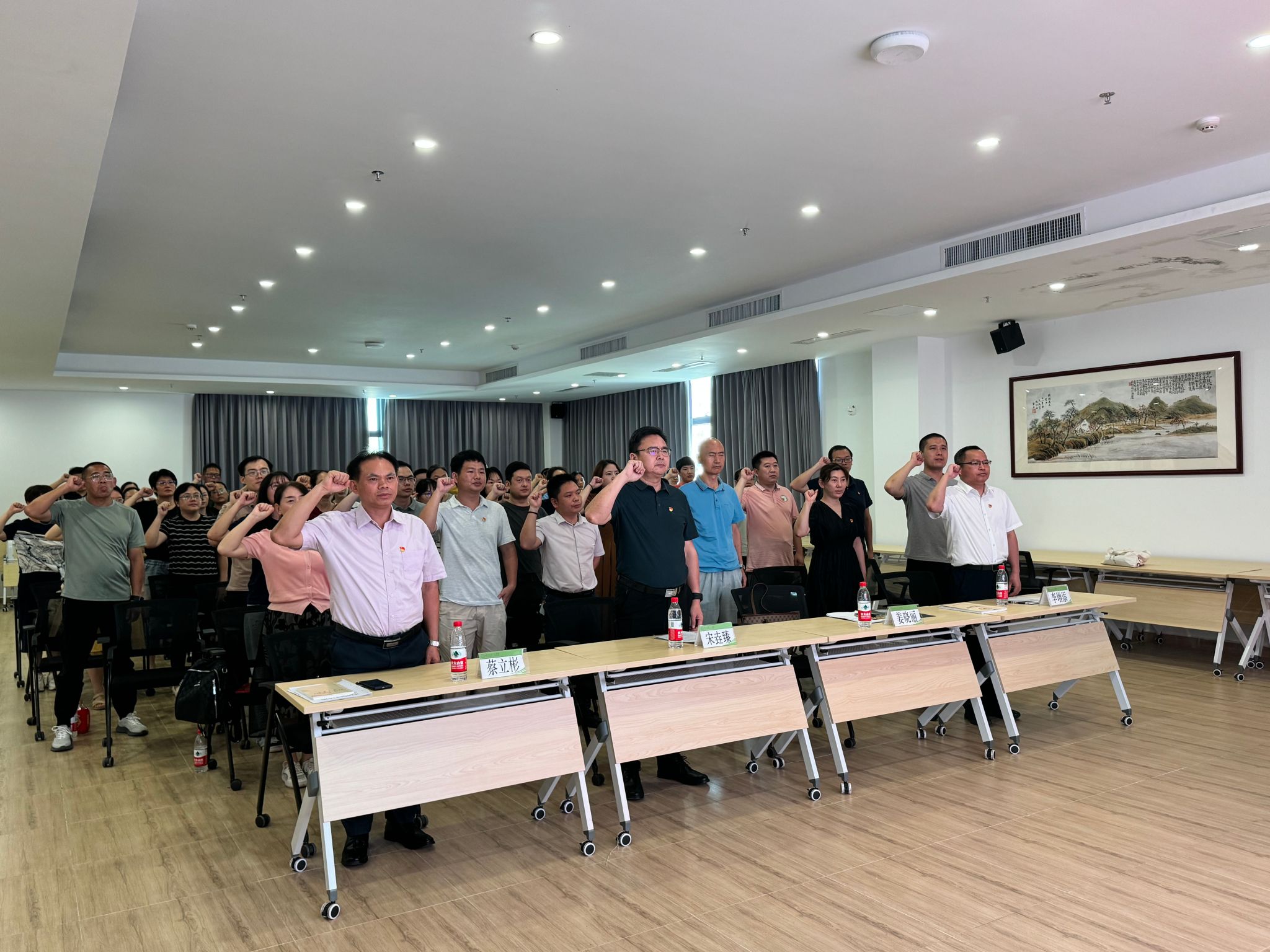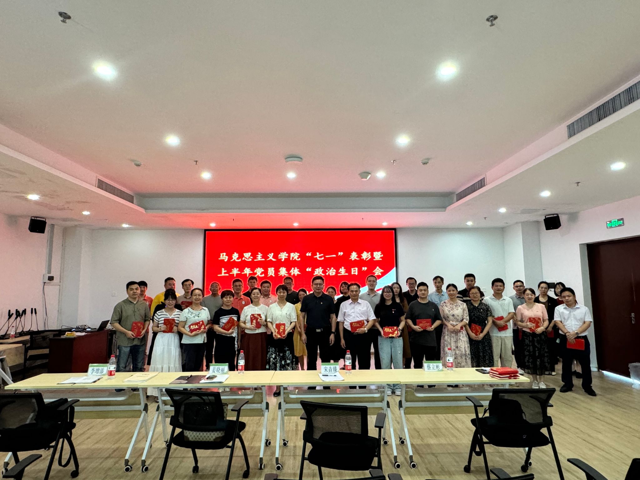 “我志愿加入中国共产党,拥护党的纲领,遵守党的章程,履行党员义务,执行党的决定......”铿锵有力的宣誓声响彻整个会场。6月27日下午,马克思主义公司党总支在白云校区图书馆第二报告厅召开“七一”表彰大会暨上半年党员集体“政治生日”会,公司全体党员面向党旗重温入党誓词,集体庄严承诺、同过“政治生日”。公司党委书记宋垚臻,太阳成集团tyc122cc全体党员参加会议。公司党总支书记姜晓丽主持会议。