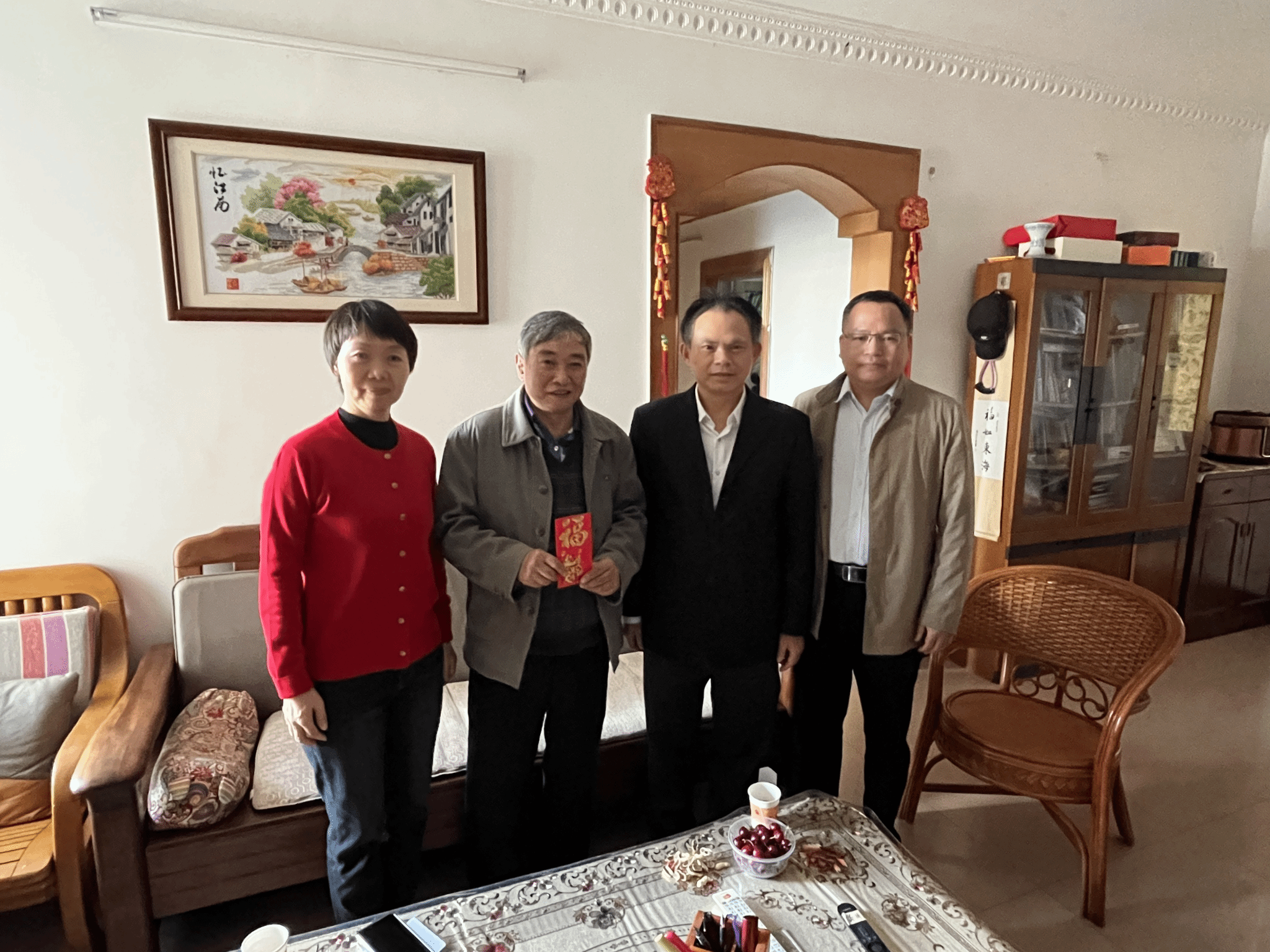 在2024年春节即将来临之际,为表达对公司退休的老党员和老教师的关心和爱护,弘扬中华民族尊老、敬老、爱老的传统美德,公司党总支和工会通过线上线下送祝福、走访慰问、召开座谈会等方式向已退休老党员和老教师表达节日问候,对生病的教职工进行慰问。