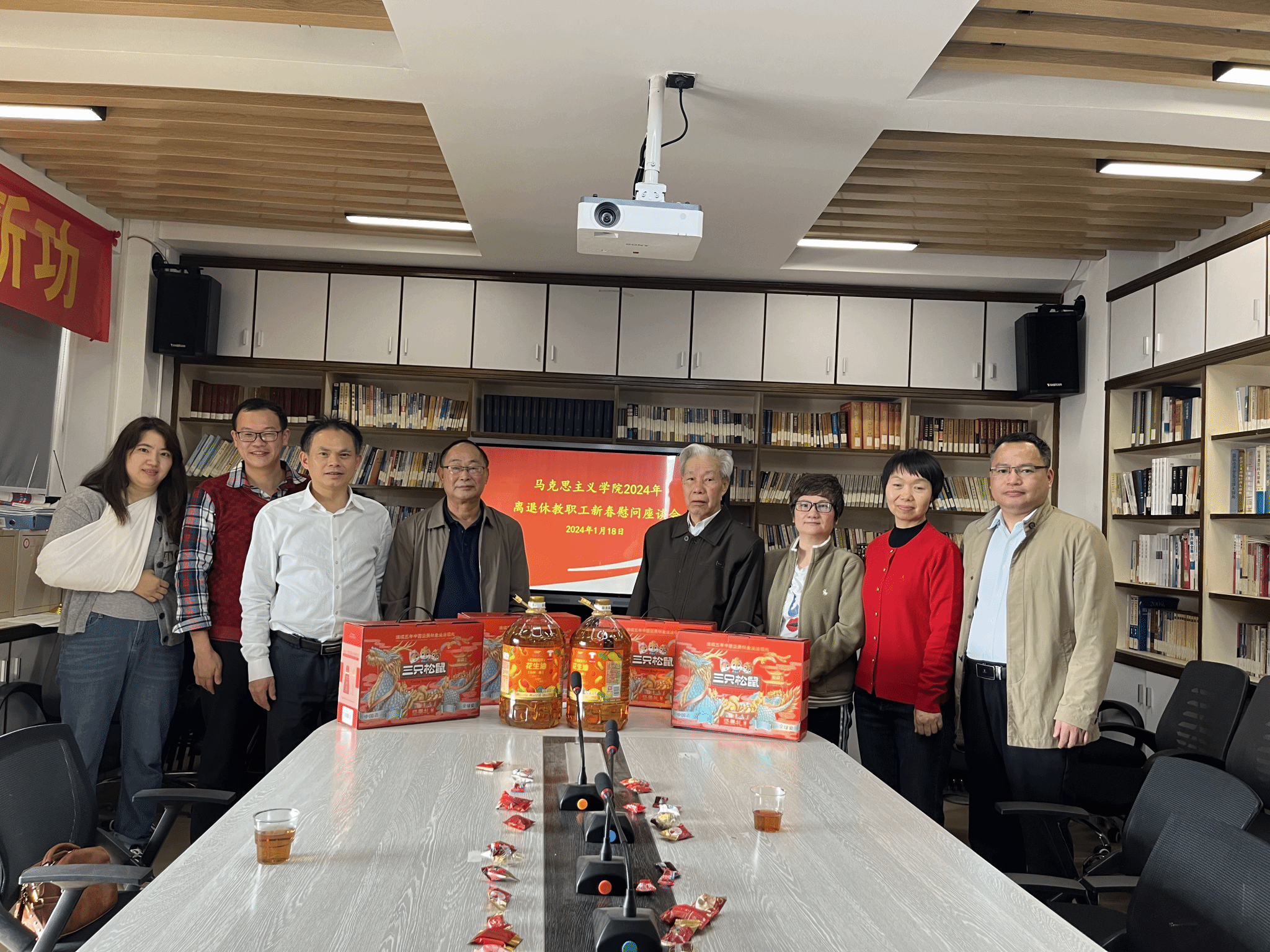 公司党总支和工会代表分成几个小组,分别开展春节慰问工作。对在校内的退休老党员和老教师进行了走访慰问,对身体较好的老师邀请他们到白云校区马院新办公地点来走一走、看一看,给老师们送去了节日的祝福和礼物。